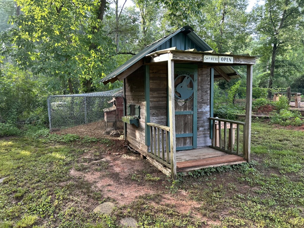 The Hoppy House is a thoughtfully designed, fully enclosed habitat for our Flemish Giants. The main house, with a cozy indoor area, is connected to a covered porch. A spacious 10’x10’ outdoor enclosure allows the rabbits to enjoy fresh air and sunlight in a safe, stimulating environment.